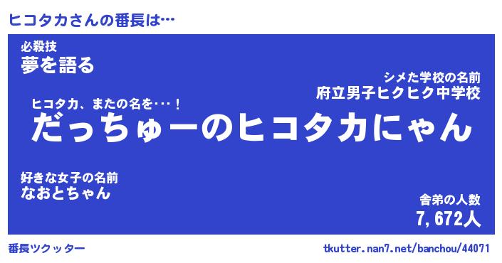 | ヘコむあだ名 | 『ヒコもー』『豆乳』『ヒコっ子』 |