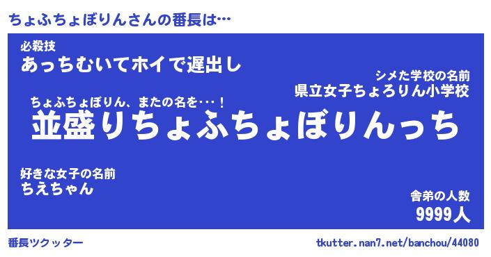| ヒーロー風カッコイイあだ名 | 『スーパーチョフチョボリン』 |