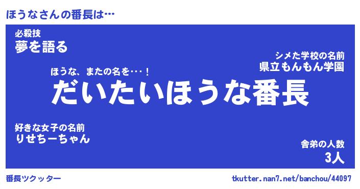 | ヒーロー風カッコイイあだ名 | 『スーパーホウナ』『ウルトラほうなマン』 |