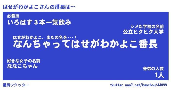 | ポケモン風あだ名 | 『ハセチュウ』『ハセガダネ』 |