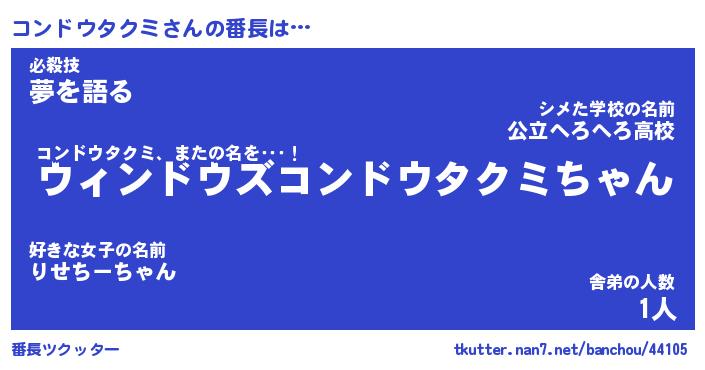 | 男性向けラノベタイトル風あだ名 | 『コンドウタクミの憂鬱』 |