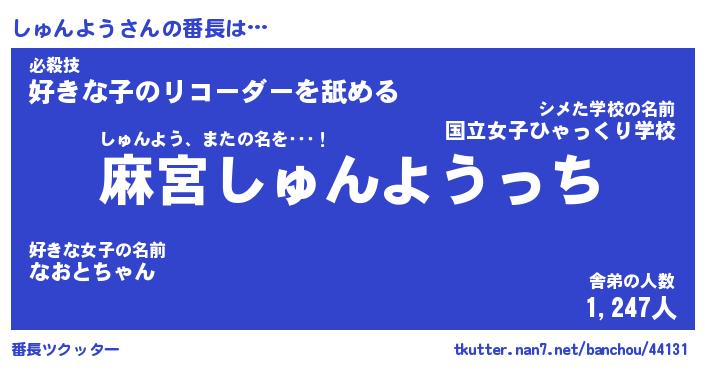 | 2回繰り返すあだ名 | 『しゅしゅ』『ししゅゅ』『ぬめぬめ』 |