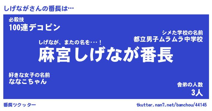 | ピコ太郎風あだ名 | 『シコ五郎』『ピシ六郎』『シゲ十郎』 |