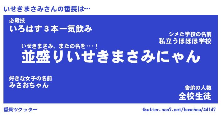 | 肩書あだ名 | 『いせきまさみ社長』『いせきまさみ団長』 |