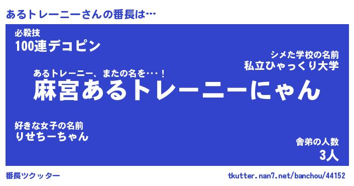 | 意味不明あだ名 | 『ペロリンあるトレーニー』 |