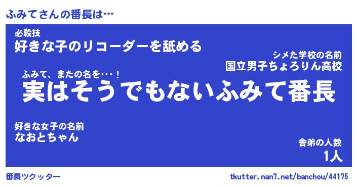 | 肩書あだ名 | 『ふみて社長』『ふみて総理大臣』 |