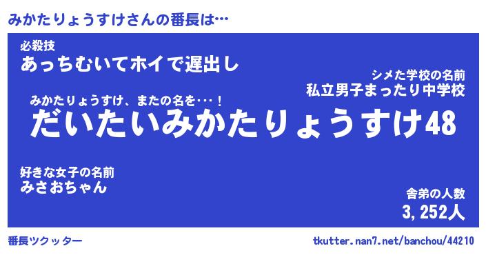 | 男性向けラノベタイトル風あだ名 | 『みかたりょうすけの憂鬱』 |