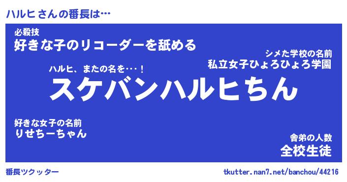 | ポケモン風あだ名 | 『ハルチュウ』『ハルヒダネ』 |