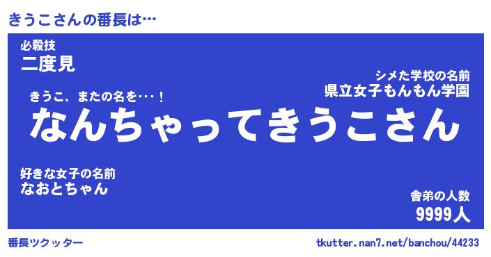 | 肩書あだ名 | 『きうこ店長』『きうこ国家主席』 |