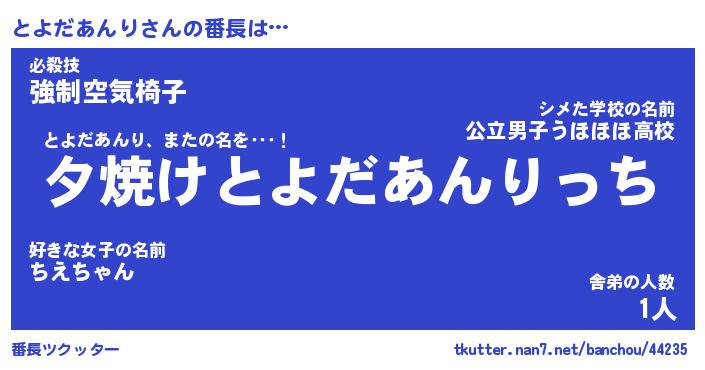 | 肩書あだ名 | 『とよだあんり御曹司』 |