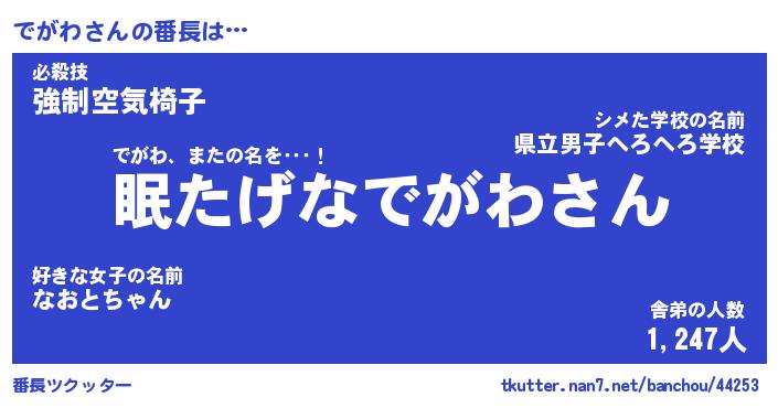 | 2回繰り返すあだ名 | 『でがでが』『ででがが』『へらへら』 |