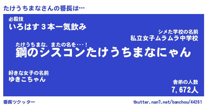| ヘコむあだ名 | 『たけにー』『なまこ酢』『たけお』 |