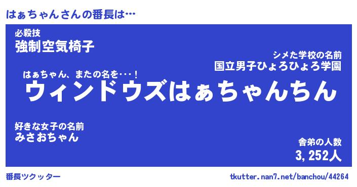| ヒーロー風カッコイイあだ名 | 『スーパーハァチャン』『幻影騎士ハァ』 |