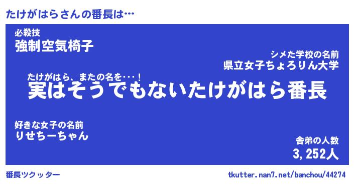 | ファンタジー風あだ名 | 『タケフェル』『エターナルタケガハラー』 |