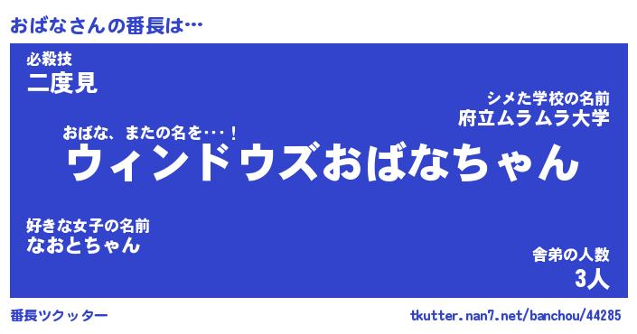 | 意味不明あだ名 | 『ペロリンおばな』『おばなフォーエバー』 |