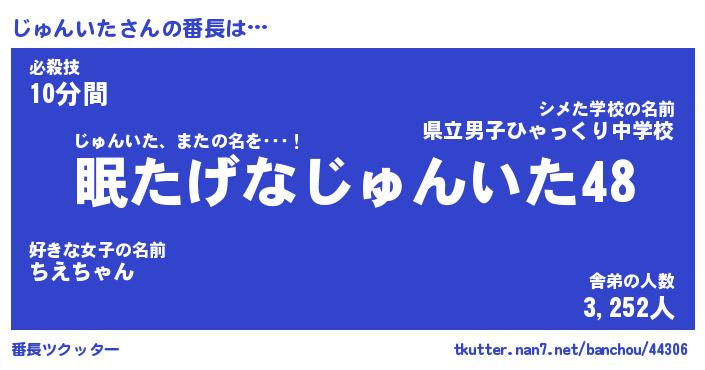 | ヘコむあだ名 | 『じゅもー』『牛乳』『じゅ太郎』 |