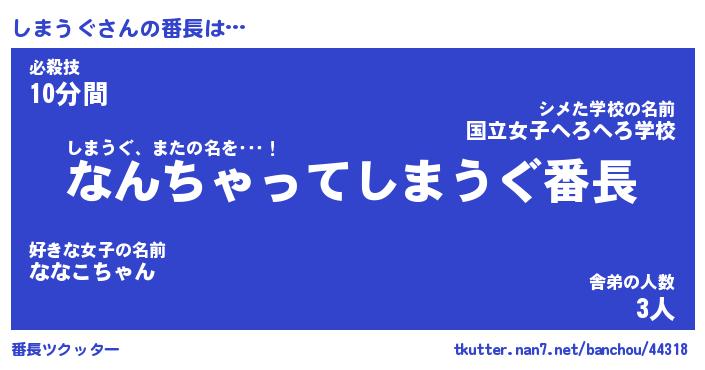 | 2回繰り返すあだ名 | 『しましま』『ししまま』『なあなあ』 |