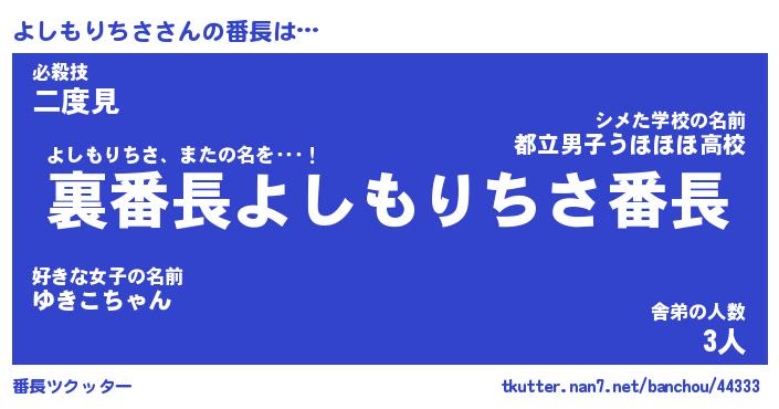 | ヒーロー風カッコイイあだ名 | 『スーパーヨシモリチサ』『魔戒騎士ヨシ』 |