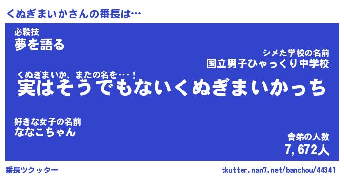 | ヒーロー風カッコイイあだ名 | 『スーパークヌギマイカ』『銀牙騎士クヌ』 |