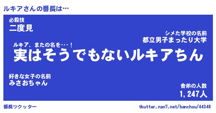 | ヘコむあだ名 | 『ルキにー』『酢こんぶ』『ルキを』 |