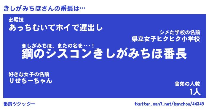 | 伝説のあだ名 | 『封印されしスナイパーきしがみちほ』 |