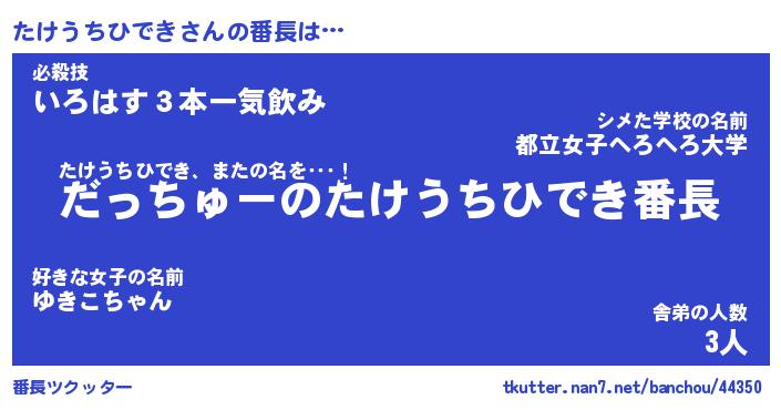 | 肩書あだ名 | 『たけうちひでき御曹司』 |