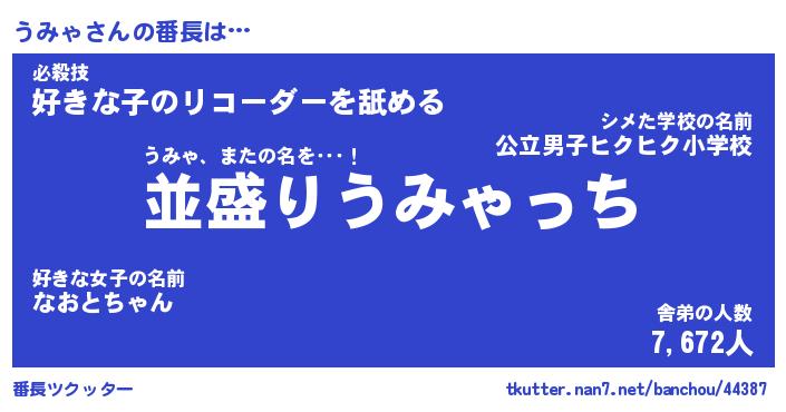 | ヒーロー風カッコイイあだ名 | 『スーパーウミャ』『ウルトラうみゃマン』 |