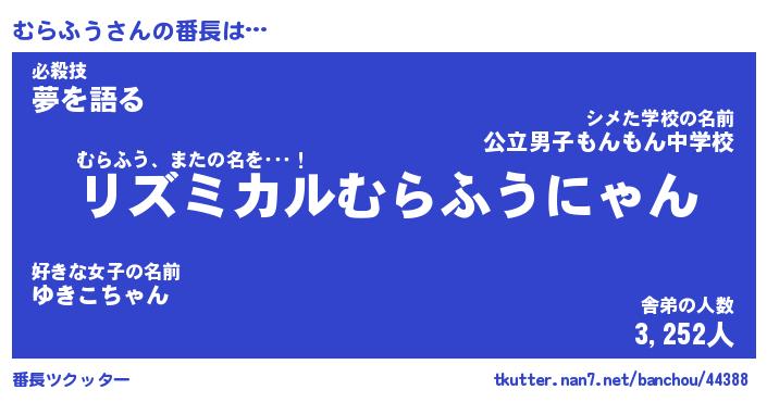 | 意味不明あだ名 | 『ペロリンむらふう』『永久保存むらふう』 |