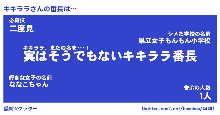 | ヒーロー風カッコイイあだ名 | 『スーパーキキララ』『黄金騎士キキ』 |