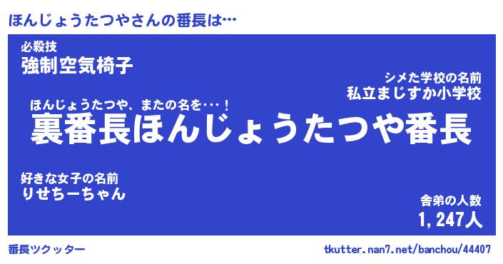 | ヘコむあだ名 | 『ほんにゅー』『つくし』『ほん太郎』 |