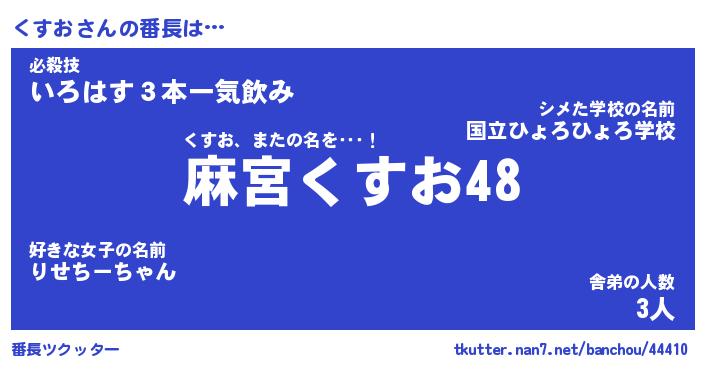 | 意味不明あだ名 | 『ペロリンくすお』『くすおフォーエバー』 |