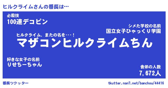 | 自動車の名前っぽいあだ名 | 『ヒルティマ』『ヒクア』『ヒント』 |