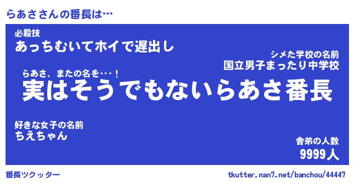 | ヒーロー風カッコイイあだ名 | 『スーパーラアサ』『ウルトラらあさマン』 |