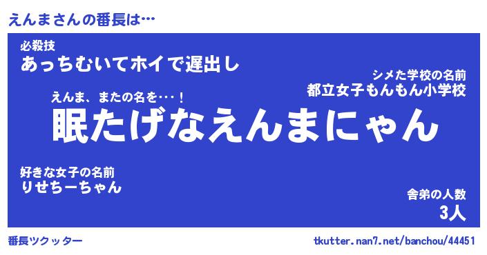 | 意味不明あだ名 | 『ペロリンえんま』『えんまフォーエバー』 |
