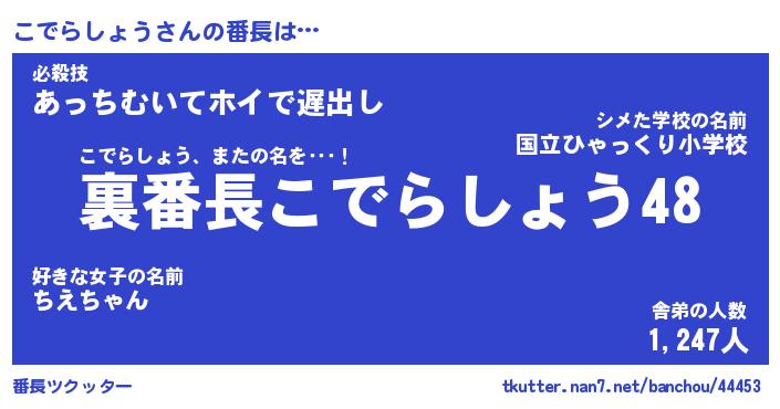 | ヘコむあだ名 | 『こでにゅー』『牛乳』『こでっちょ』 |