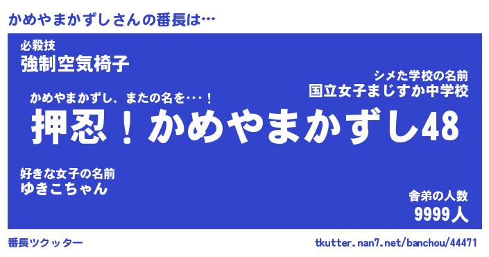 | 肩書あだ名 | 『かめやまかずし御曹司』 |