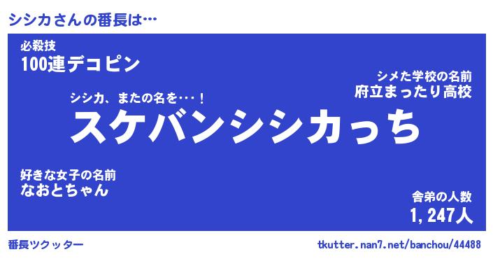 | 意味不明あだ名 | 『ペロリンシシカ』『シシカフォーエバー』 |