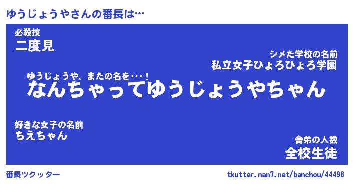 | ヒーロー風カッコイイあだ名 | 『スーパーユウジョウヤ』『暗黒騎士ユウ』 |