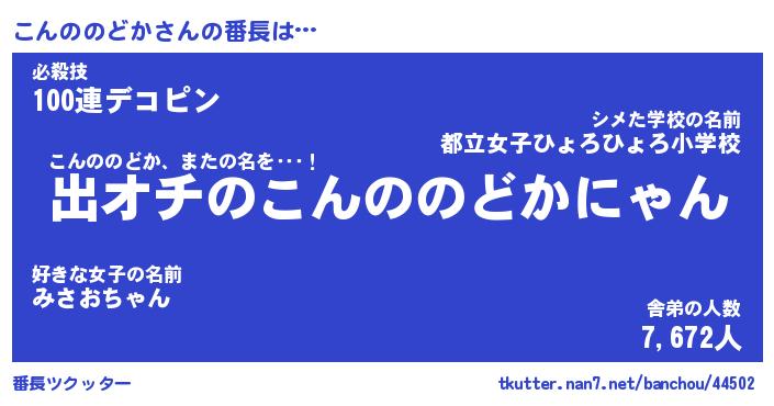 | 伝説のあだ名 | 『伝説のスナイパーこんののどか』 |