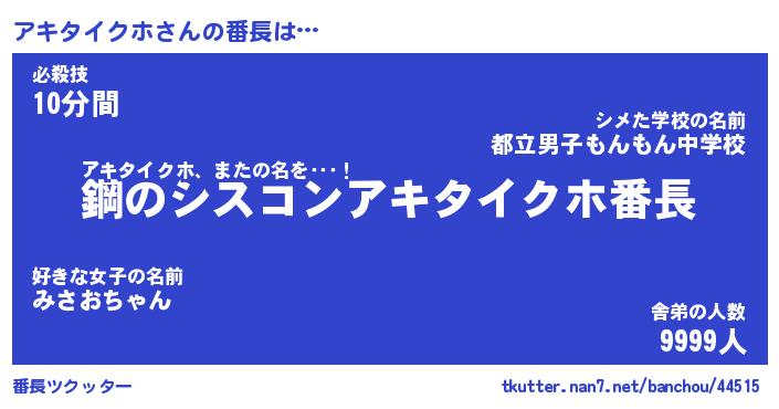 | 肩書あだ名 | 『アキタイクホ社長』『アキタイクホ班長』 |