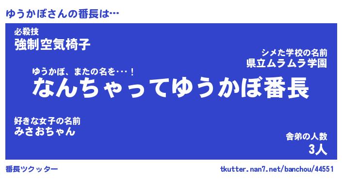 | 肩書あだ名 | 『ゆうかぼ店長』『ゆうかぼ総理大臣』 |