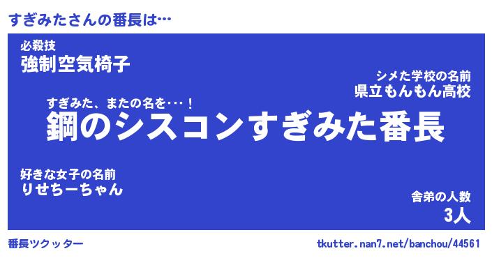 | ファンタジー風あだ名 | 『スギフェル』『エターナルスギミター』 |