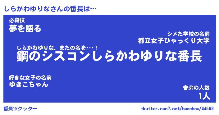 | 伝説のあだ名 | 『封印されしスナイパーしらかわゆりな』 |