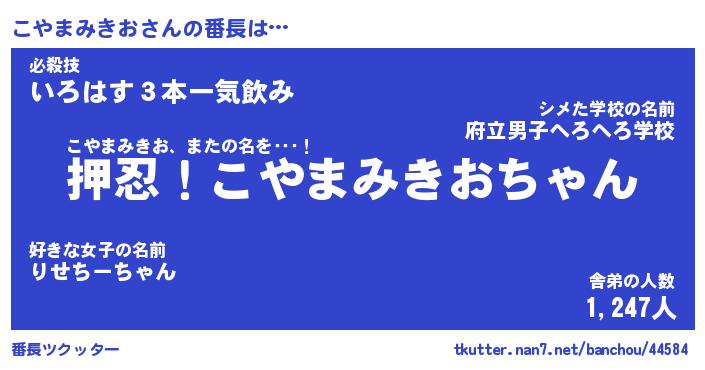 | 肩書あだ名 | 『こやまみきお社長』『こやまみきお先生』 |