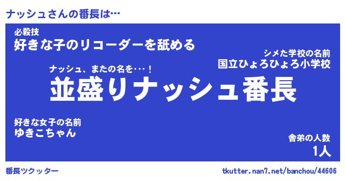 | ポケモン風あだ名 | 『ナッチュウ』『ナッシダネ』 |
