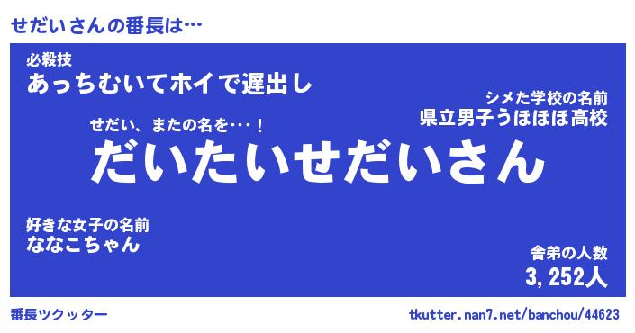 | 意味不明あだ名 | 『ペロリンせだい』『せだいフォーエバー』 |