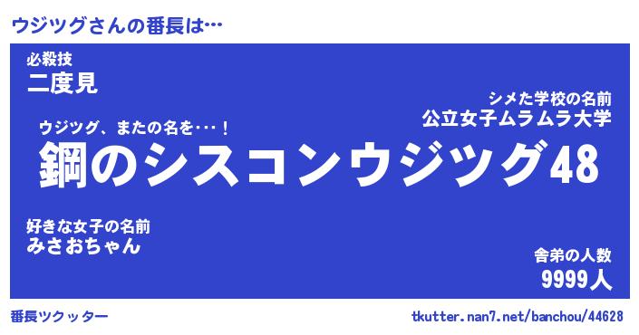 | ファンタジー風あだ名 | 『ウジフェル』『エターナルウジツグー』 |
