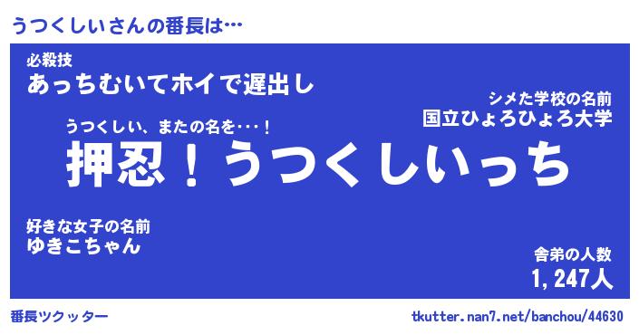 | ポケモン風あだ名 | 『ウツチュウ』『ウツクダネ』 |