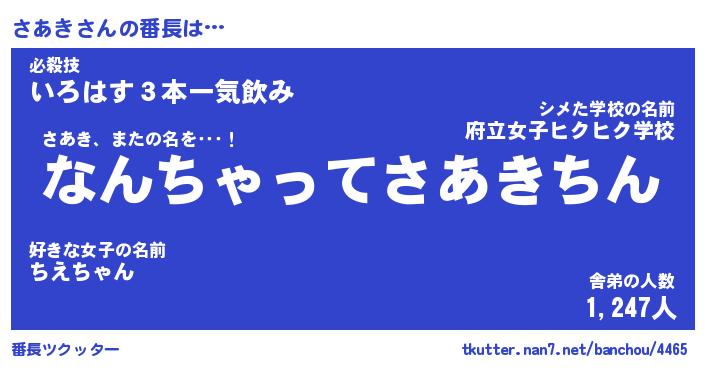| 恥ずかしいあだ名 | 『プリティーさあき』『さあっちょ』 |