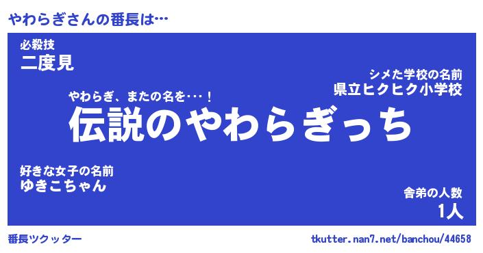 | ピコ太郎風あだ名 | 『ヤコ次郎』『ピヤ一郎』『ヤワ八郎』 |